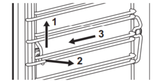 - Потяните переднюю часть направляющей для противня в сторону, противоположную боковой стенке.
