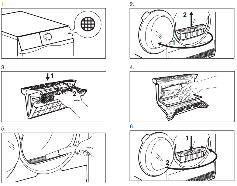 - Если не очищены фильтры машины, конденсатор и уплотнение дверцы, это может способствовать образованию чрезмерного количества влаги в помещении.