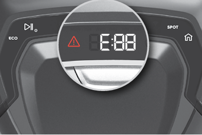 При возникновении ошибки робот прекращает уборку. На дисплее мигает предупреждающий символ и появляется индикация "E:" и код ошибки. Также выдается голосовое сообщение об ошибке. Чтобы снова прослушать голосовое сообщение об ошибке, нажмите любую кнопку.