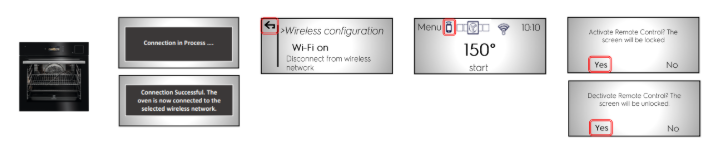 - Чтобы отключить дистанционное управление, коснитесь значка мобильного телефона на духовке и выберите "Да", когда появится второй экран с сообщением о деактивации удаленного доступа