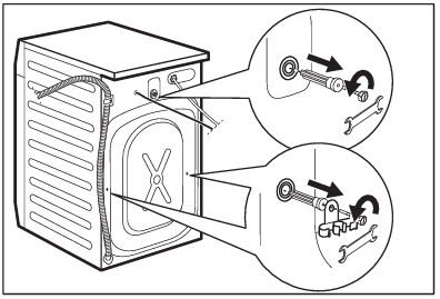 1. Переконайтеся, що транспортувальні болти видалені із задньої сторони пристрою.