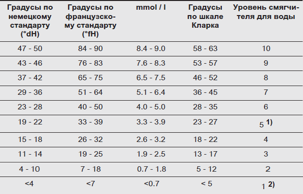 Таблица жесткости воды