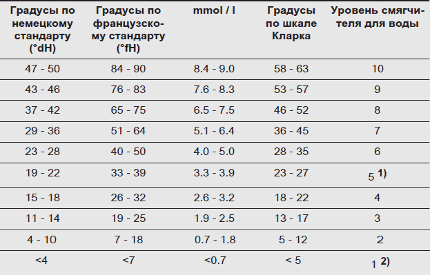Смягчитель для воды удаляет из подаваемой в прибор воды минеральные вещества, которые в противном случае могли бы оказать негативное влияние на результаты мойки и на сам прибор. Чем больше в воде содержится таких минеральных веществ, тем выше жесткость воды. Жесткость воды измеряется в соответствующих единицах. Смягчитель для воды необходимо настроить в соответствии с уровнем жесткости воды, используемой в вашем регионе. Информацию о жесткости воды в вашем районе можно получить в местной службе водоснабжения. Для получения хороших результатов мойки важно правильно выбрать уровень настройки смягчителя для воды.