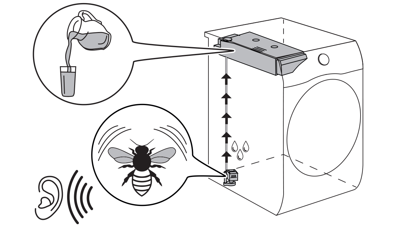 Во время первых операций сушки вы можете услышать звуки более высокого уровня, которые издаются насосом, датчиком влажности или фетровой лентой, которую предварительно необходимо намочить небольшим количеством воды.